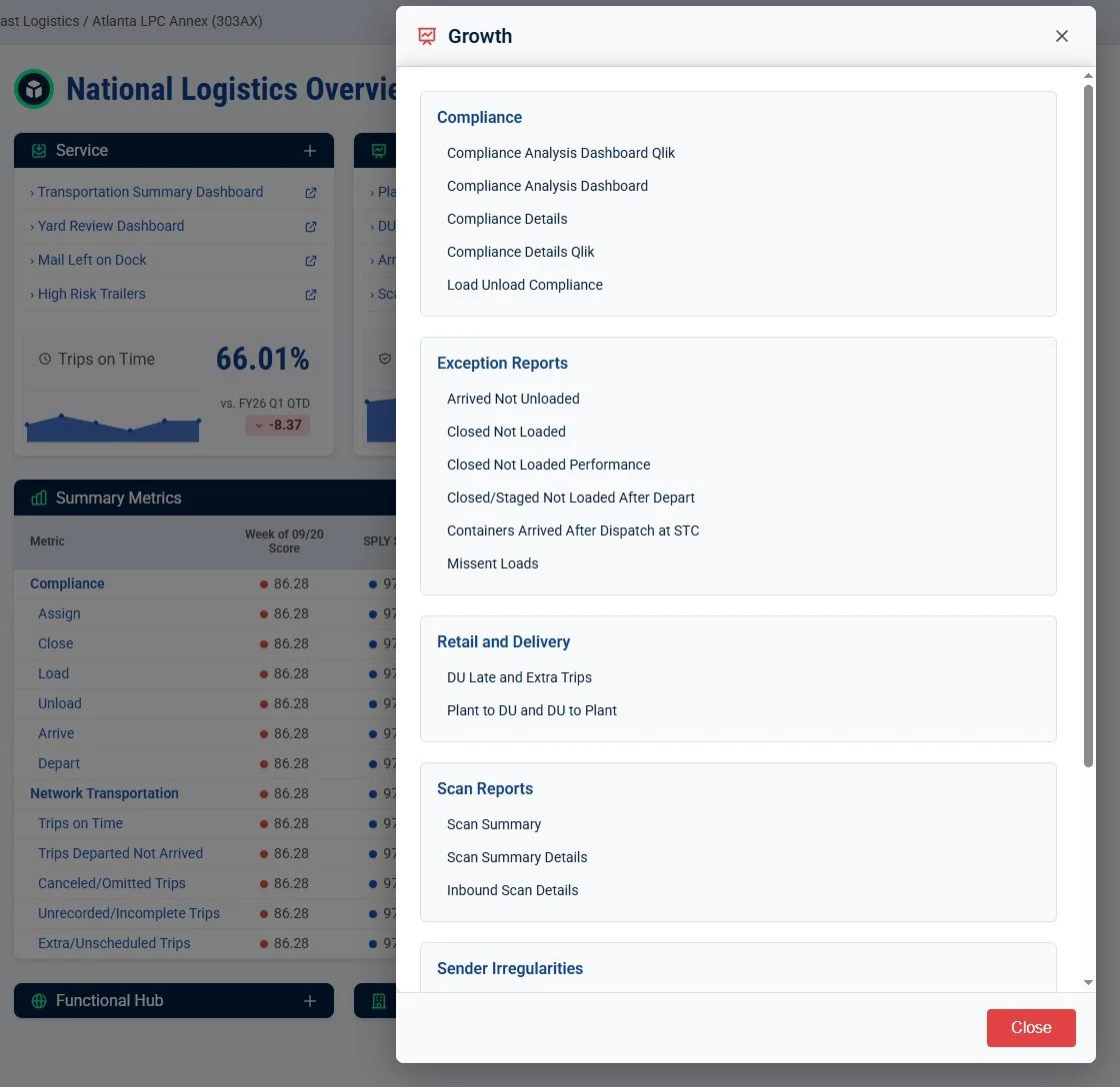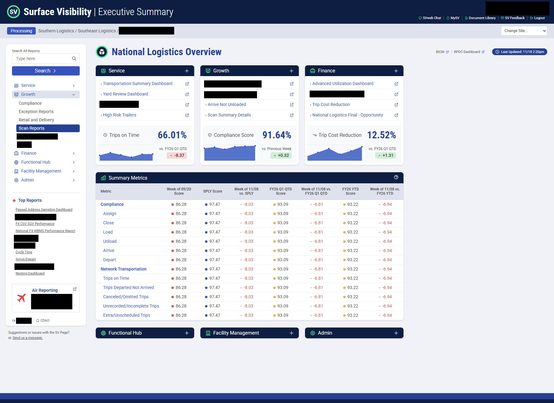 The existing dashboard was the central hub for logistics and operations teams across the country. It surfaced critical performance metrics — compliance scores, transportation data, and week-over-week comparisons — but the interface hadn't evolved with its users' needs.